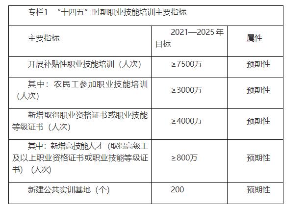 ——终身职业技能培训制度更加完善。深入实施职业技能提升行动,形成贯穿劳动者学习工作终身,覆盖劳动者职业生涯全程,适应就业创业和人才成长需要以及经济社会发展需求的终身职业技能培训制度,推进终身职业技能培训组织实施。