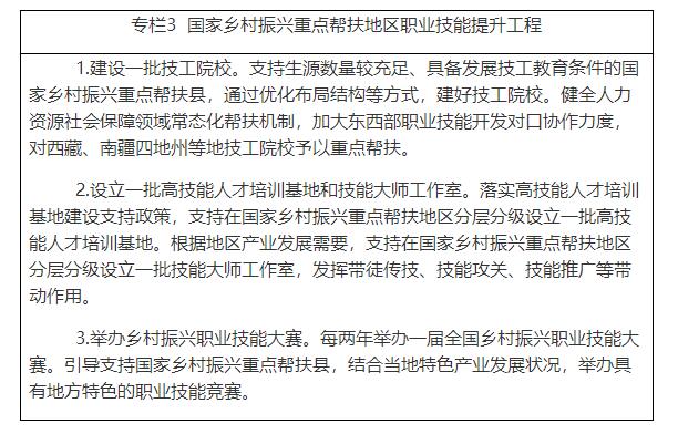 开展技能帮扶工作。对符合条件的脱贫家庭(含监测帮扶对象家庭)、困难职工家庭、社会救助对象和残疾人,重点依托职业院校,实施技能帮扶千校行动、雨露计划、残疾人职业技能提升计划。